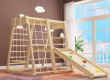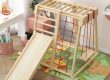 Feature | It folds together for easy storage. All mechanical fixtures are thread locked to ensure they do not become undone. Once the frame is opened a stainless steel safety pin is inserted to secure the frame in an open position. The wood is treated with an eco/baby-safe water-based coating. The slide is constructed using 15mm birch plywood and coated with the same water-based coating. The paint used in the grooves on the reverse side of the slide is also ‘baby-safe.’ | |